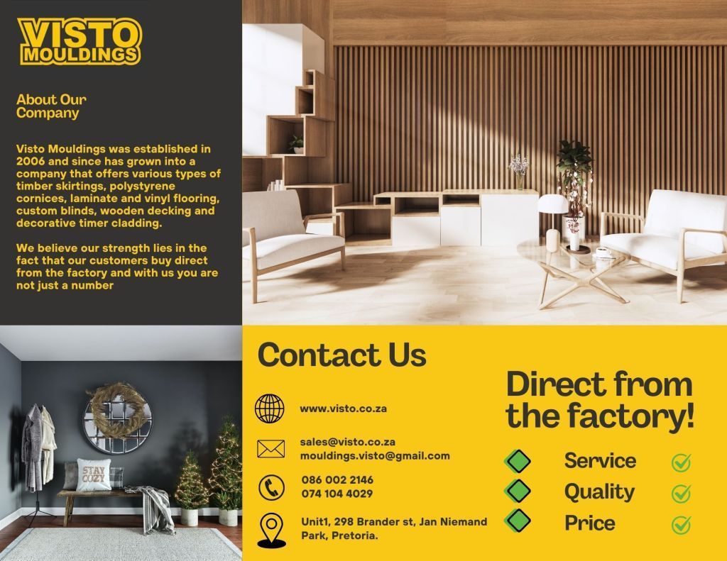 I want to thank Visto Mouldings, and especially Christo, for the excellent service from start to finish. From my first contact via the website up and until the installation of my floor it has been an absolute pleasure. I will definitely be recommending your services and also find ways to do business with you again.